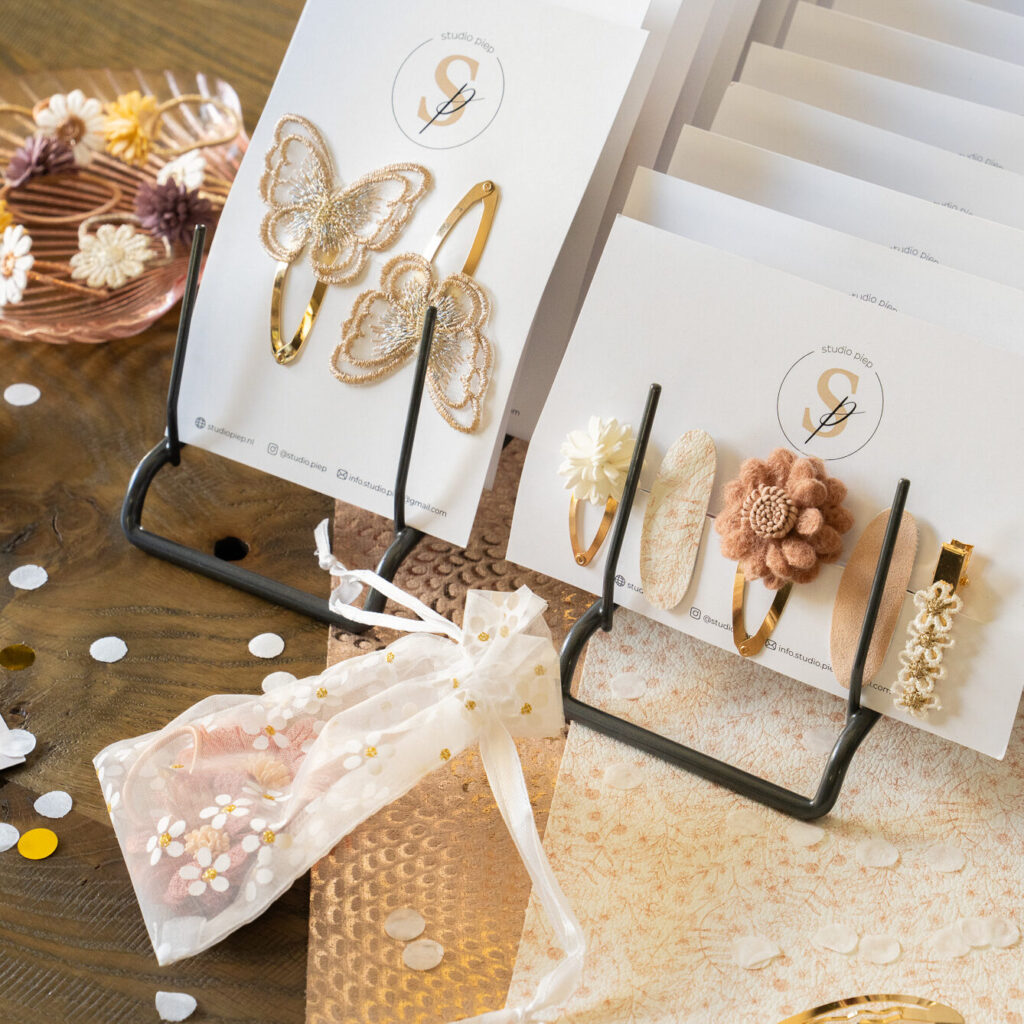 Alle haarclips bij studio piep zijn met liefde zelfgemaakt. Daarom zijn alle clips origineel, anders en one of a kind. Omdat alles zelf is gemaakt is er ook een beperkte voorraad en een langere levertijd.